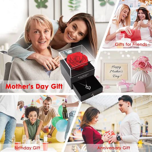 Preserved Flowers Whit High-End Rose Necklace Gift Box, Mother'S Day,Valentine'S Day,Christmas,Thanksgiving,Anniversary,Romantic Surprise Gift for Proposing Women (Red Flower)